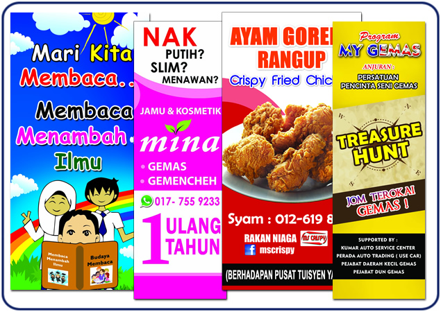 Buntings at road side, lamp post, junctions, and in front of your shops are growing rapidly. We are your trusted printing company in MALAYSIA. We understand that visual displays and signs are vital to your business /event and we can help you choose the format that is most suitable in price and effectiveness to maximise your brand exposure and marketing message. We offer generous discounts for multiple/bulk orders on our range of products.